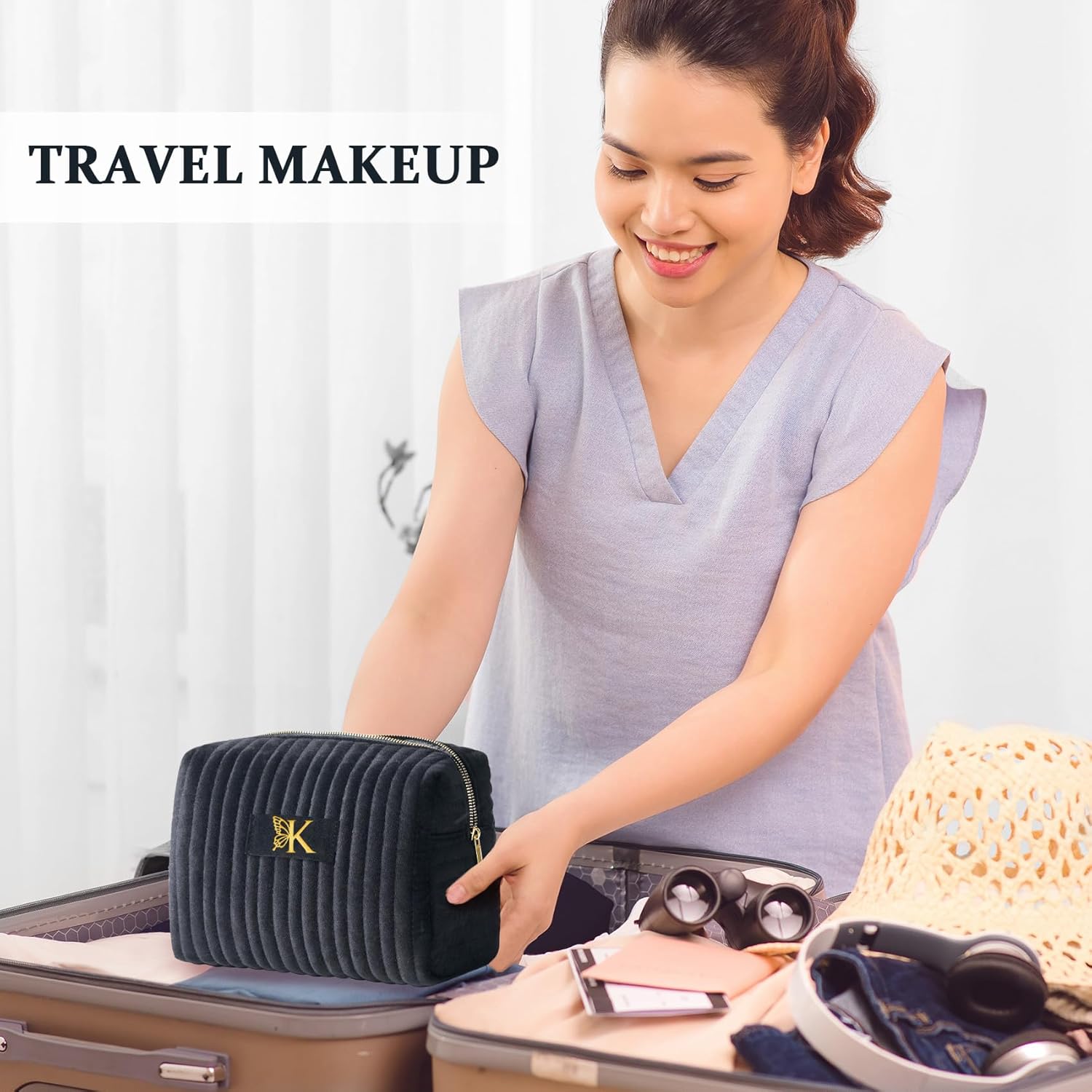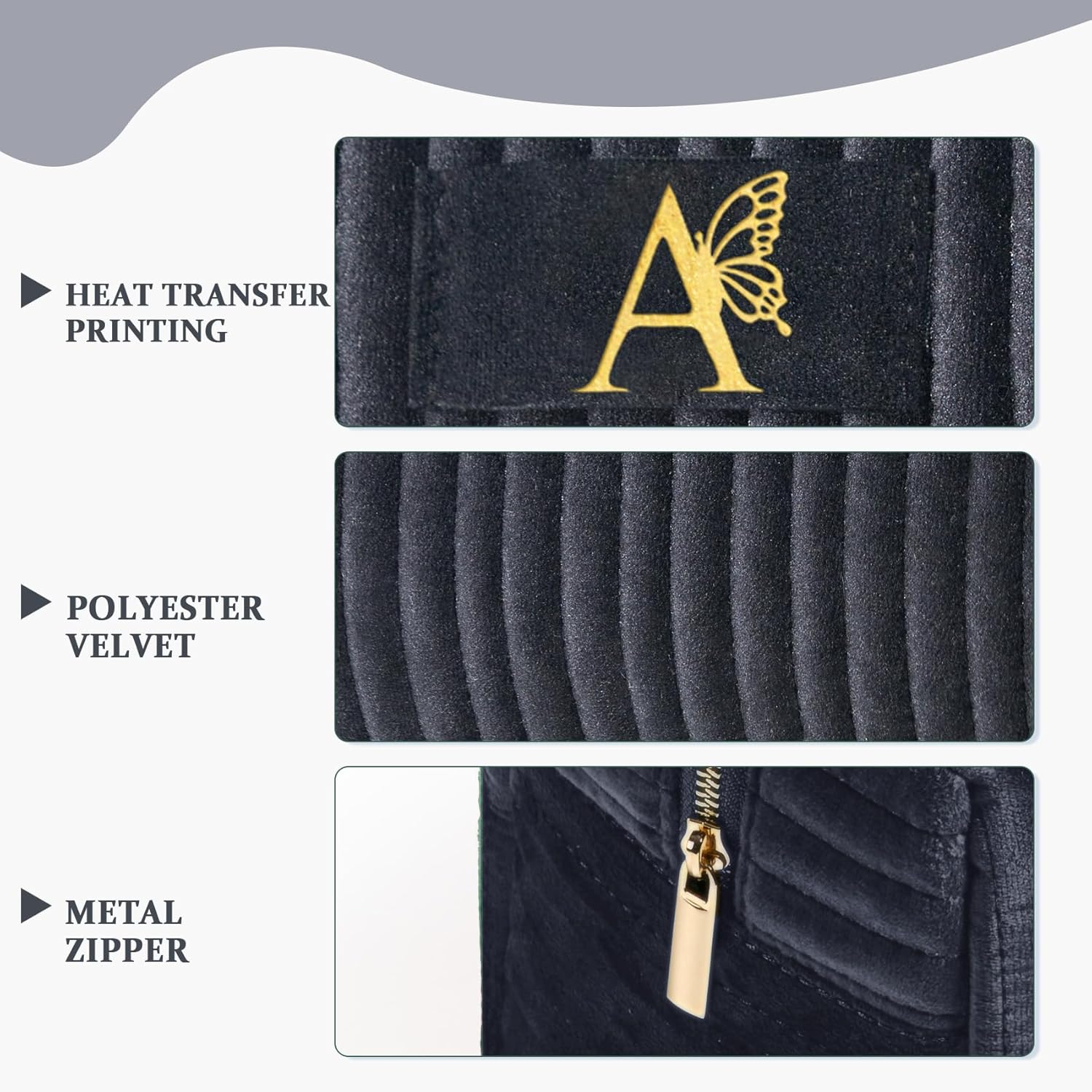 - [Initial Letter Not Fade or Peel Off] The butterfly letter A-Z made by heat transfer printing, works well on the polyester velvet makeup bag; no worries in daily organizer of travel size cosmetic kits skincare toiletries beauty tools accessories.