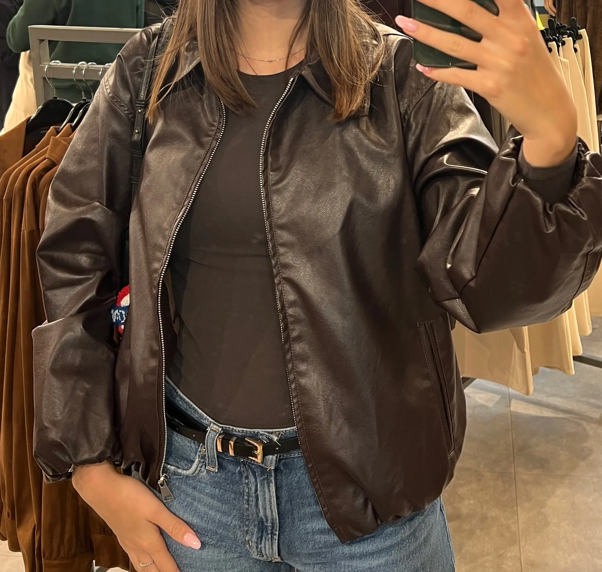 TFMLN Autumn New Style Imitation Women Leather Pilot Jacket Female New Arrival Casual Outerwear for Ladies Leather Coat